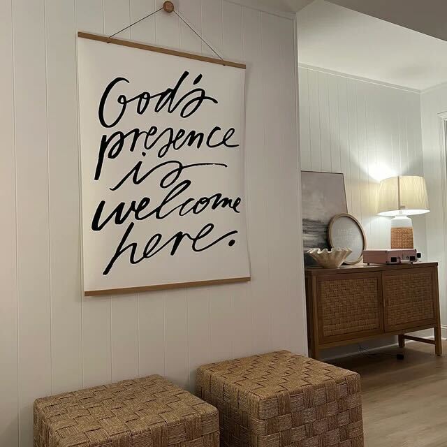 Slightly Imperfect Large Canvas Banner: In this home we believe