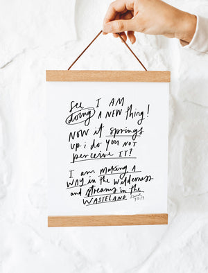 "See I am doing a new thing! Now it springs up, do you not perceive it? I am making a way in the wilderness and streams in the wasteland. Isaiah 43:19"