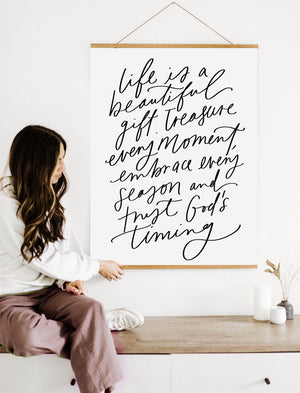 "Life is a beautiful gift. Treasure every moment, embrace every season and trust God's timing"