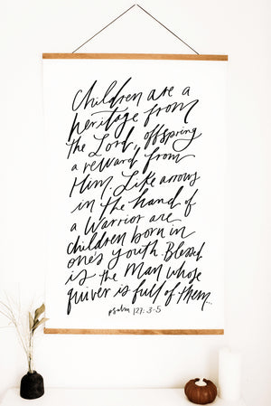 "Children are a heritage from the Lord, offspring a reward from Him. Like arrows in the hand of a warrior are children born in ones youth. Blessed is the man whose quiver is full of them"