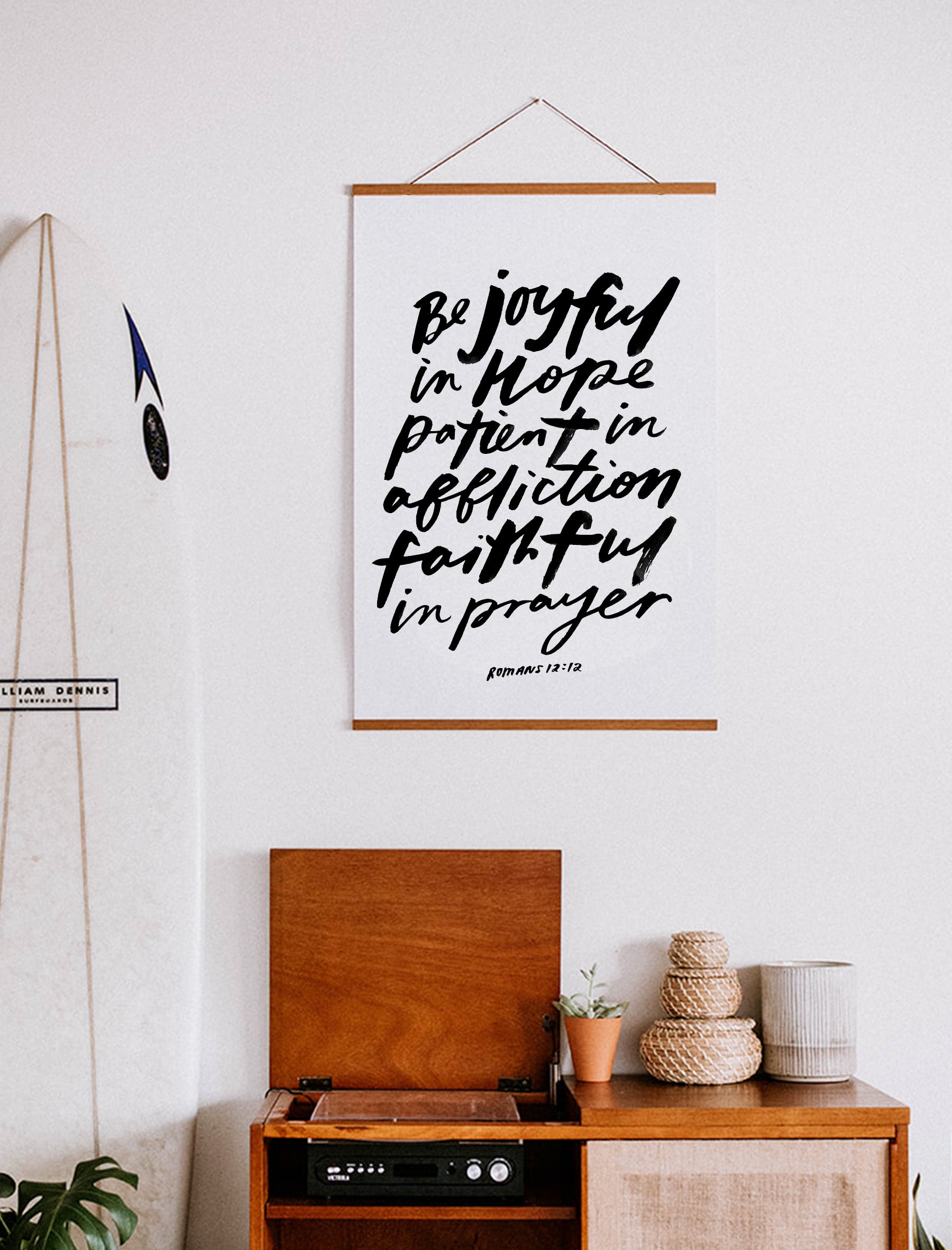 "Be joyful in hope patient in affliction and faithful in prayer"
