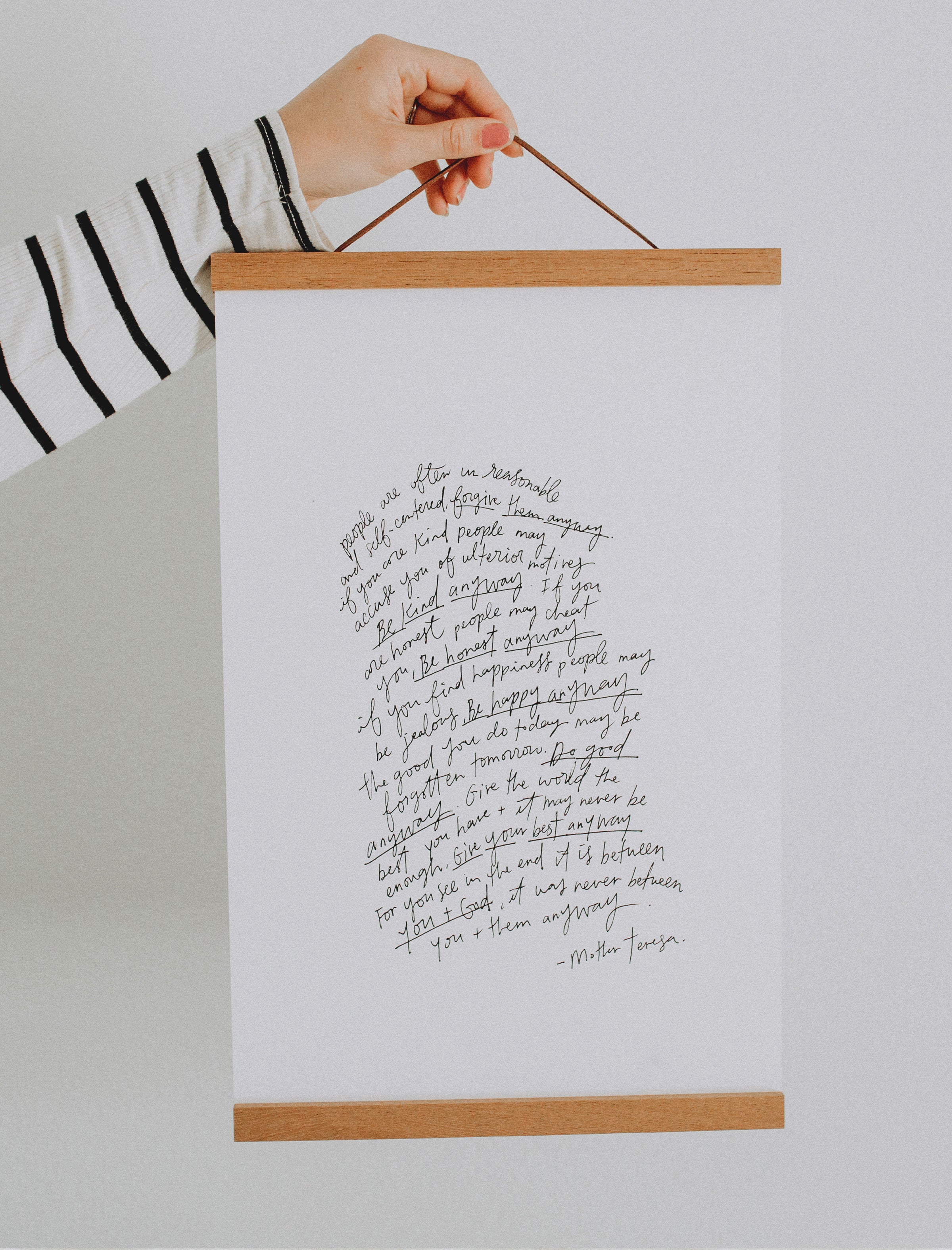 11" Magnetic hanging banner wood with leather string for 11x17 prints