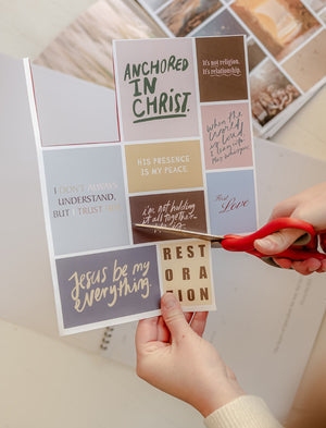 📖 The Prayer Board Image Book is full of over 450 beautiful photos, words, and faith-filled quotes you can cut out and use to build your monthly boards. Dimensions: 8.5 x 11 inches.