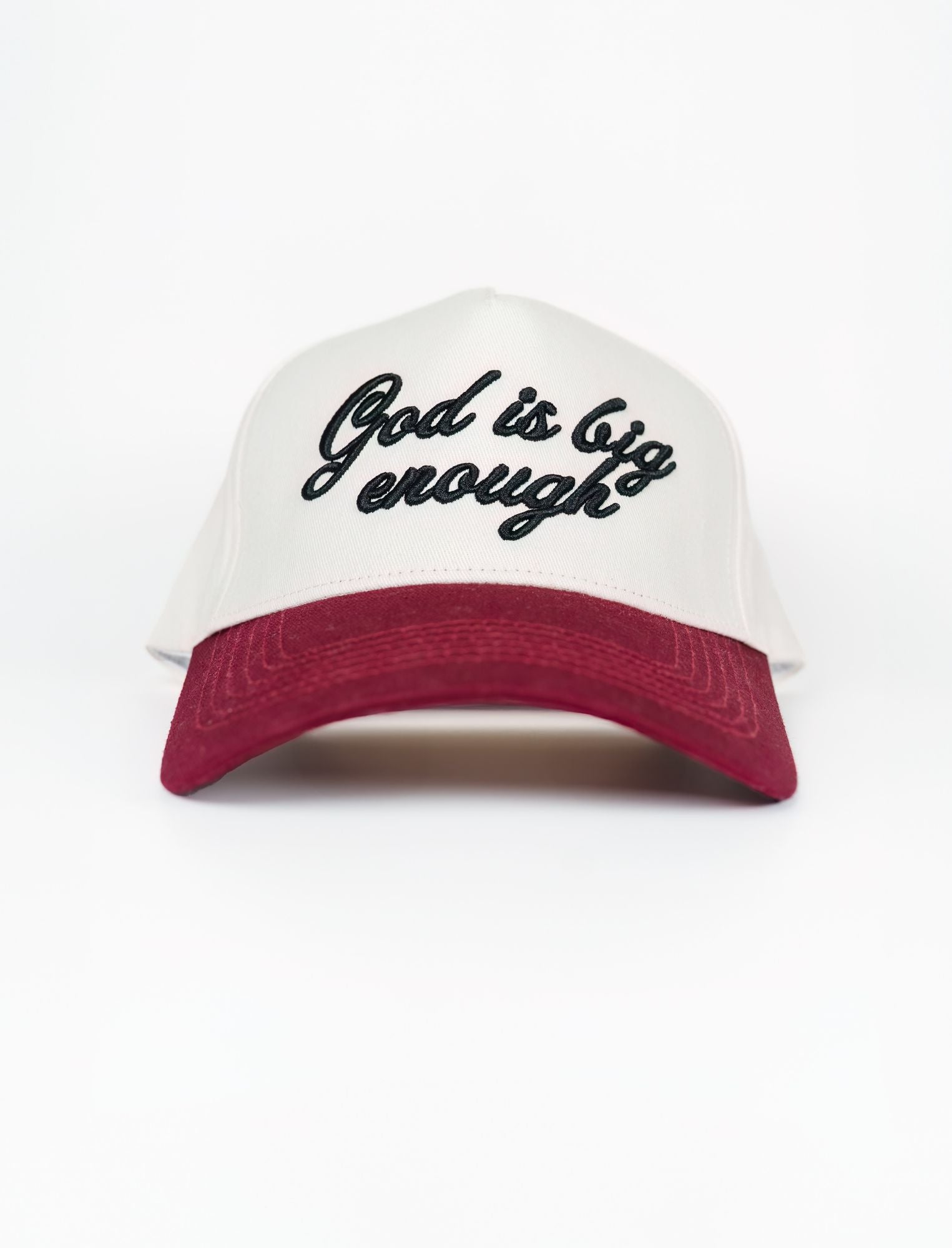 Our hat features the declaration "God is big enough" beautifully embroidered. Made from 100% cotton, it provides a soft and comfortable fit, perfect for everyday wear.