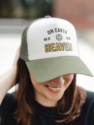 Express your faith with style and comfort with our "On Earth as it is in Heaven" embroidered hat.
