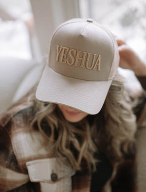 The "Yeshua" hat is a stylish and versatile cap that is more than just an accessory; it's a statement of faith and a reminder of the power in the names of God: Yeshua (to save, deliver).