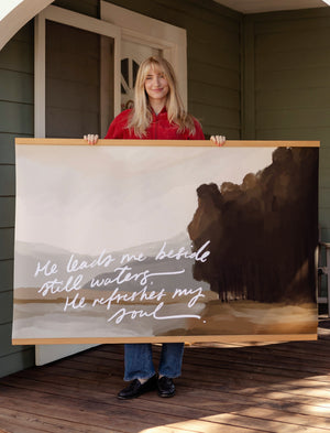 These oversized cotton canvas banners are our largest art pieces we’ve ever released, designed to anchor a space with biblical promises, truth and the presence of God. At 60” x 40”, they’re not just wall art, they’re a focal point.