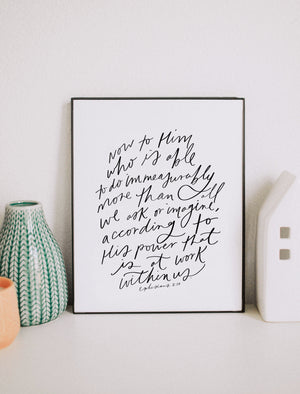 "Now to him who is able to do immeasurably more than all we ask or imagine, according to his power that is at work within us" Ephesians 3:20