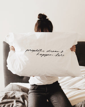 White "Prophetic dreams happen here" Pillow Case
